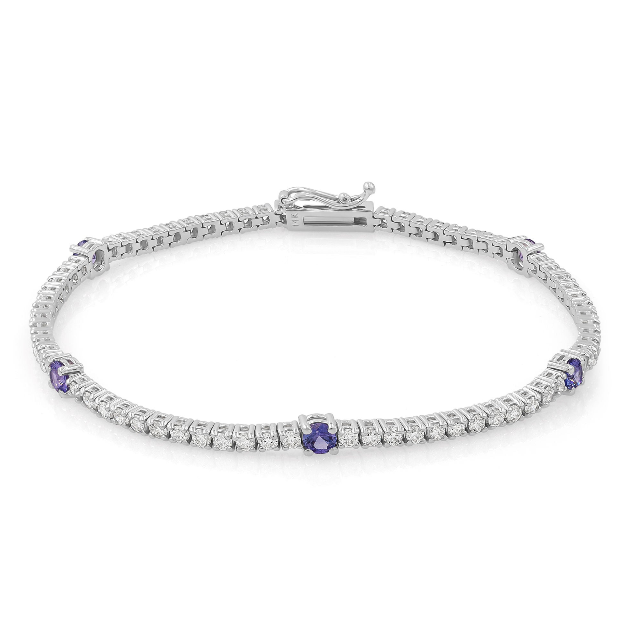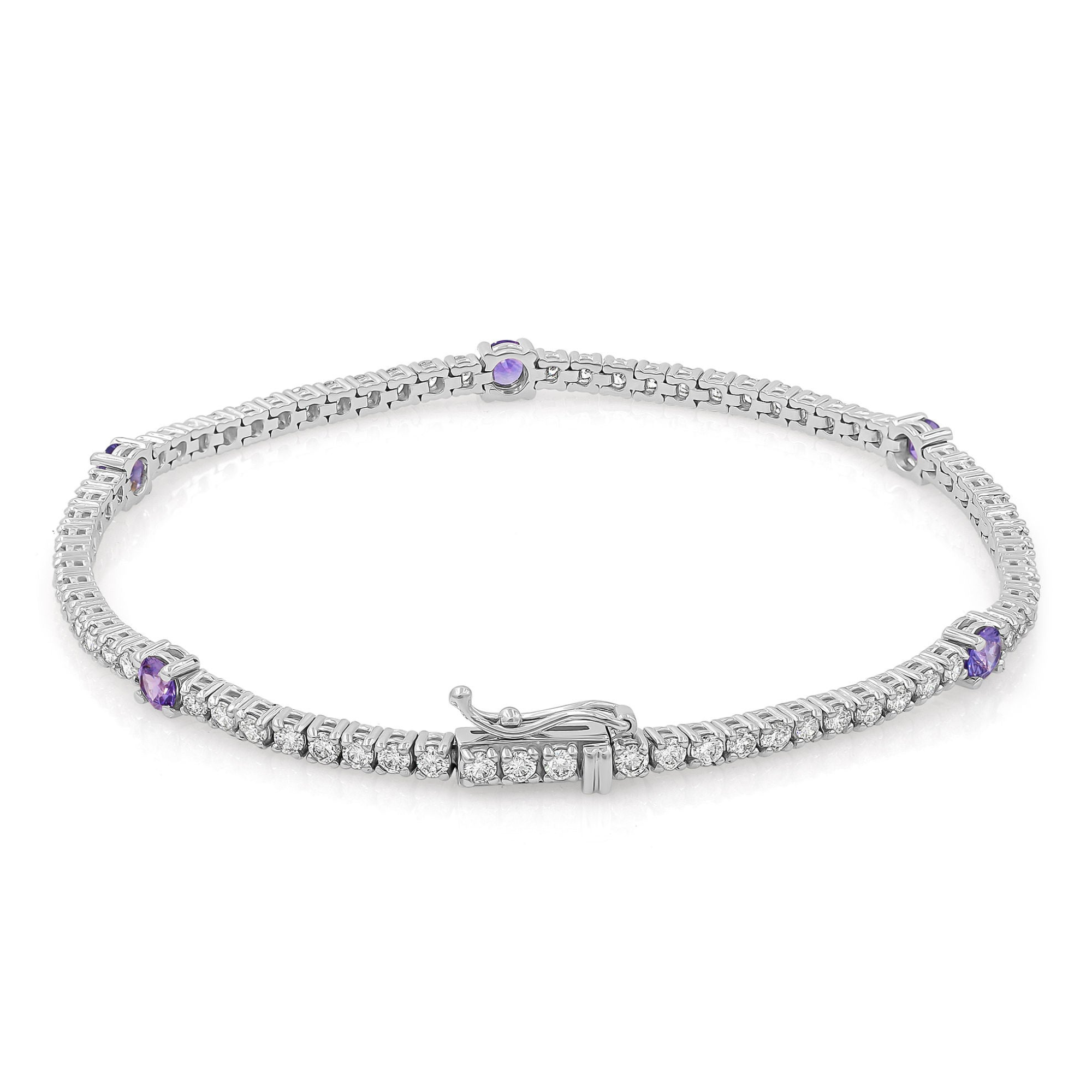 Diamond and purple sapphire tennis bracelet