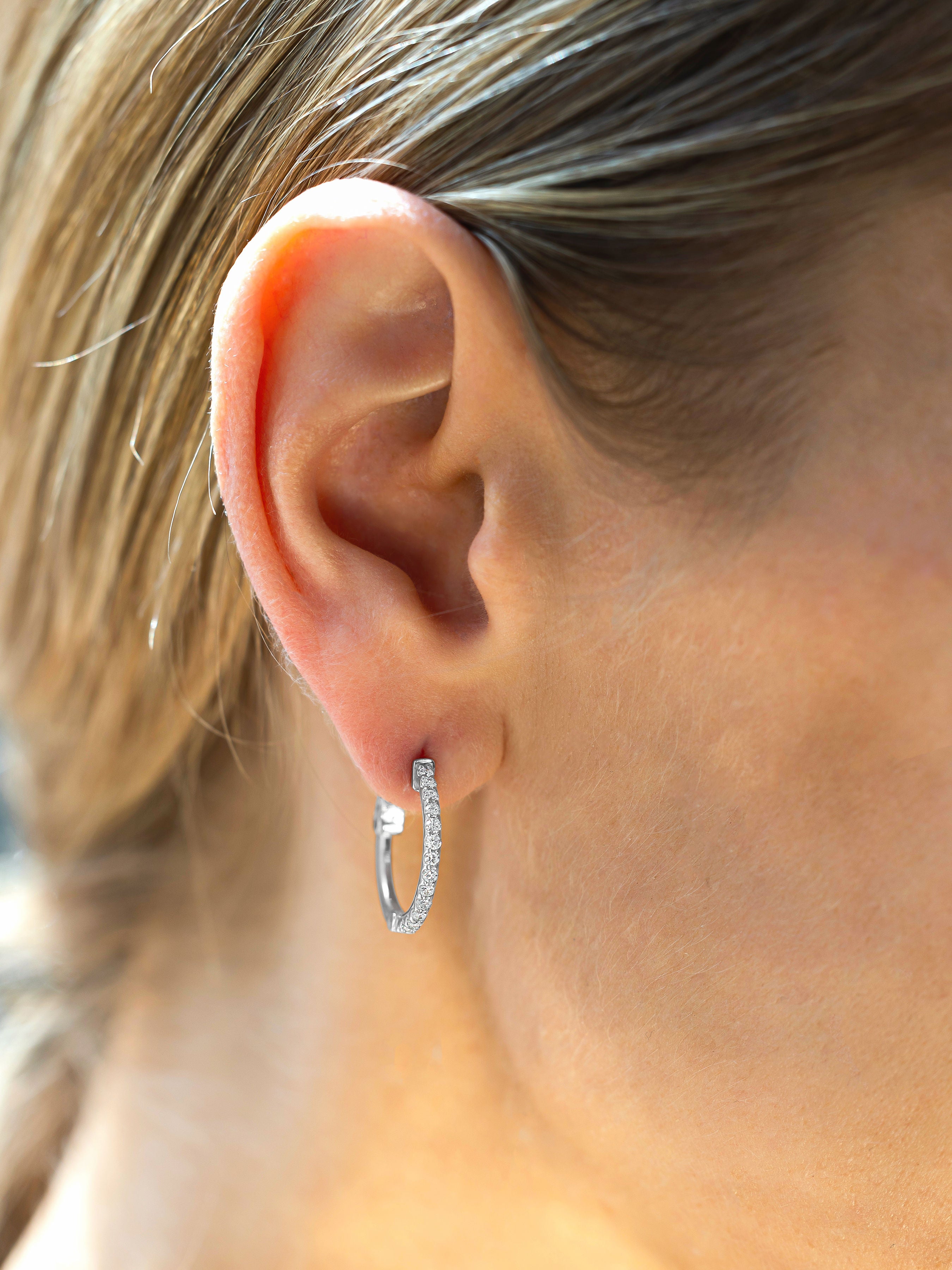 14kt white gold diamond hoops