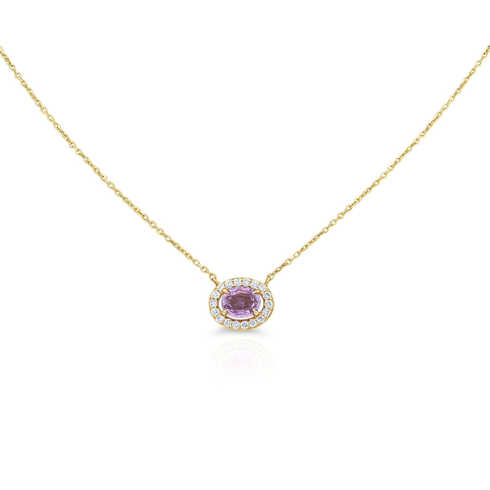 Pink Sapphire with Diamond Halo Necklace